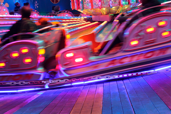 Først stille og roligt, men når vinklen kommer op på 110 grader, og gondolerne snurrer rundt, nærmer kraften sig 5G.